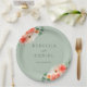 Rustic Sage Green and Orange Wildflowers Wedding Paper Plate