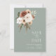 Rustic Sage Green and Peach Floral Save the Date Card. Announce your wedding with this elegant Save the Date card in sage green, featuring soft peach florals and timeless serif typography. A perfect introduction to rustic, spring, or countryside weddings with a botanical, vintage-inspired feel.
