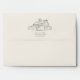 Off white envelope with green inside. Back flap features Sage Green illustration of barn and return address.