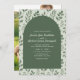 Celebrate your special day with this elegant sage green wedding invitation featuring a modern arch design surrounded by soft watercolor greenery. The front showcases your wedding details in clean, classic typography set against a deep sage panel, creating a beautiful contrast with the leafy botanical background.