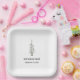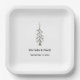 Modern casual wedding reception paper plate, with a sage green pine tree and customisable typography design. A rustic addition to your wedding reception party supplies.