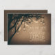 Rustic save the date invitation with tree branches and hanging mason jars with glowing fireflies.
