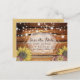 This rustic save the date postcard features a wooden plank background with beautiful lettering and vintage sunflowers.