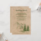Rustic Scenic Mountain Wedding Info Card features a brown kraft background. A green mountain range and trees can be found at the top of this information card and fonts in green in fun fonts and styling's throughout the invitation. This is a outdoor or destination rustic wedding invitation. Matching stationery and products for this set can be found in our store.