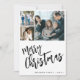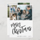 Rustic elegant stylish simple black and white Merry Christmas holiday card with modern handwritten calligraphy script, 6 custom family photos, and personalised text. Easy to customise on both sides!