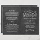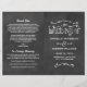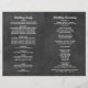 Wedding ceremony sheet programs feature "Welcome to the Wedding of" in white script and a background with a textured black chalkboard appearance. Personalise the custom text for your bridal party, ceremony information, and thank you message. Note: these text weight paper programs arrive flat and require folding to assemble.