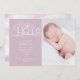 Decorative rustic script "hello" with flourishes and a butterfly stencil illustration coupled with name and date in elegant serif font. Very easy to customise with your information and photo for rustic elegant announcement, and you can change the colour of the background beyond the existing choices of dusty blush and baby blue.