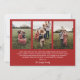 Modern photo Christmas card featuring a simple and minimal design with "Merry Christmas" in an elegant, red rustic script over your favourite picture along with your family name. The template includes a white overlay to help the text stand out over your photo and may be removed in the design editing tool. The back has a photo collage consisting of three vertical photos over a cranberry red background.