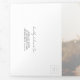 Modern photo wedding tri-fold invitation featuring a simple design with "the wedding of" in a rustic style script typography along with your wedding details over your favourite picture with an opaque overlay. On the right is the RSVP postcard and on the left is the enclosure card. This elegant invitation with a minimalist layout is great for any style of wedding.