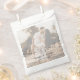 Modern photo wedding favour bags featuring a simple design with "love is sweet" in a rustic style script along with your names and wedding date over your favourite picture with an opaque overlay. This elegant wedding favour bag with a minimalist layout is great for any style of wedding.