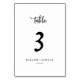 This rustic script table number is perfect for a country wedding. The simple and modern black and white design features unique whimsical handwritten calligraphy lettering with a contemporary minimalist boho style. Customisable in any colour. Keep the design minimal and simplistic, as is, or personalise it by adding your own graphics and artwork. The card prints on the front and back (double-sided). Items are printed exactly as they appear on your screen when you add to cart, so personalise and add each table number that you need to your cart individually.