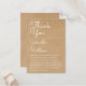 Rustic script wedding thank you reception card featuring chic modern typography which can be personalised with your special guest thank you message on a rustic kraft background. Designed by Thisisnotme©