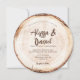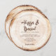 Capture the essence of a beautiful and romantic rustic wedding with our Rustic Script Wedding Wood Cut Custom Invitation. Inspired by the charm of wood cut slabs commonly found at rustic weddings, this round card mimics the appearance of a wood slice, showcasing the unique tree rings.