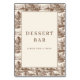This wedding tabletop sign features a charming rustic design with a sepia-toned pastoral landscape border, showcasing trees and quaint cottages in muted earth tones. The central area is elegantly framed by this vintage-inspired pattern, creating an inviting atmosphere. Bold serif typography announces "DESSERT BAR" followed by a friendly invitation to "PLEASE TAKE A TREAT!" The overall aesthetic evokes nostalgia and warmth, perfect for enhancing the ambiance of your special event.