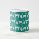 A bright, fun mug for winter for all your winter hot chocolate, coffee, even soup or chilli! This jumbo speciality mug features rustic silhouette white deer, both bucks and does, on a background of teal!