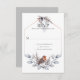A rustic rsvp featuring a trendy geometric frame with silver, grey, and rust winter botanicals with a colourful bird in the same colours at the bottom. The back of the card is pale grey. Easily personalise with your own information.