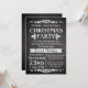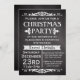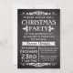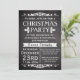 Rustic and vintage slate chalkboard black board theme Christmas party invitation is great for celebration. dark charcoal grey and black background with white chalk look lettering and antique theme decos.