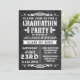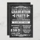 Congratulate the grad with a festive event. Unique rustic dark charcoal grey and black background with white chalk look lettering and antique theme decos. Graduation party invitation for boys or girls, great theme for a bbq, cookout or outdoor graduate celebration.