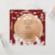 A rustic winter wedding Christmas with snowflakes illustration, white string lights on rustic brown wood tree trunk log, all the illustrations colour are editable to match your own colour palette with white pine tree branches on country wood background on dark red with an elegant script typography. Add your photo and initials.