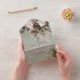 ALSO AVAILABLE WITH DETAILS, OR A QR CODE. Envelop your guests in the serene beauty of winter with our exquisite wedding invitation. A calming dusty sage backdrop creates a peaceful canvas for a stunning arrangement of fresh green pine sprigs, soft cream-coloured blooms, and rustic brown pinecones. This natural masterpiece is adorned with a delicate snowfall of shimmering silver snowflakes, capturing the magic of a winter wonderland. The interplay of textures and colours evokes a sense of cosy warmth and festive cheer, setting the perfect tone for your winter celebration. Let this invitation be the first glimpse of the magical day you have planned. Created by Simply Farmhouse Press.