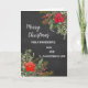 Merry Christmas for son and daughter in law card in rustic watercolor poinsettias and foliage and chalkboard background.