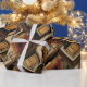 Warm geometric stripe pattern wrapping paper featuring tribal-inspired diamonds, zigzags, and textured vertical bands in earthy brown, terracotta, tan, beige, and charcoal tones. A cozy boho design ideal for southwestern décor lovers, rustic style fans, and anyone drawn to earthy, handcrafted aesthetics.