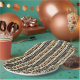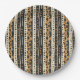 Warm geometric stripe pattern paper plate featuring tribal-inspired diamonds, zigzags, and textured vertical bands in earthy brown, terracotta, tan, beige, and charcoal tones. A cozy boho design ideal for southwestern décor lovers, rustic style fans, and anyone drawn to earthy, handcrafted aesthetics.