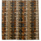 Warm geometric stripe pattern shower curtain featuring tribal-inspired diamonds, zigzags, and textured vertical bands in earthy brown, terracotta, tan, beige, and charcoal tones. A cozy boho design ideal for southwestern décor lovers, rustic style fans, and anyone drawn to earthy, handcrafted aesthetics.