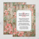 Rustic style Spring wedding invitation done in a pale weathered wood grain look, with coral pink painted looking tree blossoms. A decorative double framed white text area has custom text ready to personalise for your special day. Matching products are available.