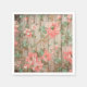 Stylish wedding paper napkins, with graphics of a rustic wood looking background, with coral pink blossoms Matching wedding products are available.