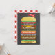 Unique Stacked Hamburger with onions, pickle, lettuce, hot dog, cheese, mustard, ketchup, on a chalkboard background. A gingham red picnic pattern is on the back of the invitation. Your guest will love this unique invitation. Customise with your own text. Please check my store for more like this. Original Illustration by pj_design. Email me if you need help. You may make this a larger card by customising it and clicking on the paper options.