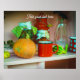 Rustic Still Life with a Pumpkin and a Red Mug Poster