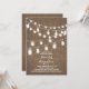 Romantic bridal shower invitation with rustic burlap and string lights with hanging mason jars.
