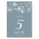 Affordable printed wedding table number cards with a simple DIY template for customisation. This rustic chic design features strands of glowing string lights and mason jars on a dusty blue background. Personalise each table number that you need and add each to your cart individually (note: adding a bulk number of cards to your cart will result in printing with all the same number). Use the design tools to choose any fonts and colours you like or upload your own photos to make a one of a kind design for your wedding table decor!