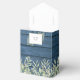 Elegant bridal shower favour box featuring pretty string lights and delicate watercolor leaves framing the brides to be's name and special date set in modern typography on a rustic blue wood background. You can personalise it with your own thank you message under the lid. A perfect way to say thank you to your guests! Designed by Thisisnotme©