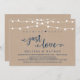 Rustic String Lights, Kraft Navy Blue, Elopement Invitation