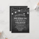 Rustic country, chalkboard anniversary vow renewal invitations- Old, vintage look chalkboard background. Top is adorned with rustic country, vintage mason jar lanterns and romantic outdoor string lights. Reads 'We Still Do' in western style lettering with 'Vow Renewal' beneath and anniversary year above in curved lettering. Anniversary party details, including RSVP information, are below. Back has coordinating, solid charcoal grey background. Note: All images are printed. Not actual chalkboard. Use the Customise It button to change anything - font styles, sizes, colours, or placement. Romantic country invites for summer or fall, outdoor rustic anniversary party, chalkboard wedding theme, backyard wedding, and western or vintage wedding anniversary styles. We have more anniversary party invitations and matching mason jar rustic party decor in our Zazzle.com/angela65* shop.