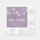 Affordable custom printed paper napkins for your wedding or any event. The design features rustic glowing string lights and mason jars hanging across the top with a mix of modern and calligraphy script fonts on a dusty purple background. Personalise it with your Mr. and Mrs. monogram and wedding date or other custom text. Use the design tools to choose any background colour, edit the text fonts and colours or upload your own photos.