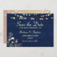 Set the tone for your romantic winter wedding with this rustic Save the Date card. Featuring a deep navy blue woodgrain background, delicate golden floral sketches, and warm glowing string lights, this design blends cosy country charm with elegant detail. Ideal for barn weddings, winter celebrations, or candlelit evening ceremonies, this card is part of a full matching suite for a beautifully coordinated look.