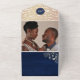 Create a magical first impression with this elegant all-in-one winter wedding invitation. Featuring a rich navy wood background, soft glowing string lights, and golden floral illustrations, this design sets the tone for a romantic, cosy celebration. Includes RSVP details with a QR code for convenience, and folds into a chic, matching envelope. Perfect for barn weddings, winter ceremonies, or rustic evening events.