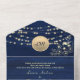 Rustic String Lights Navy Blue Wedding All In One Invitation