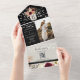 The all-in-one format includes an integrated RSVP section with a QR code that links directly to your wedding website, allowing guests to respond easily and access wedding details in one place. With space for two photos, this invitation delivers a personal, organised, and visually striking experience without the need for separate RSVP or details cards.