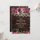21st birthday party invitation with a rustic dark brown barn wood background and twinkling string lights with pink and purple watercolor floral. Contact us for help with customisation or matching products.