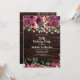 30th birthday party invitation with a rustic dark brown barn wood background and twinkling string lights with pink and purple watercolor floral. Contact us for help with customisation or matching products.