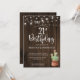 Rustic String Lights Succulent 21st Birthday Party Invitation featuring festive strings of lights and a cute potted bag of succulents and cactus on a rustic wood background. Easily add your details for a fun, custom invitation. The text is editable for any year: 21st, 30th, 50th, 90th - go wild! Great for events for any gender or age!