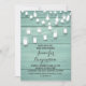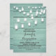 Romantic bridal shower invitation with rustic teal wood background and string lights with hanging mason jars. For teal or blue bridal shower!