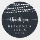 This rustic string lights thank you wedding favour classic round sticker is perfect for a modern wedding. The design features beautiful hand-painted string lights in a dark blue background.