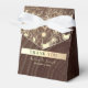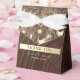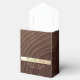 Elegant rustic wedding favour box featuring a faux wood texture, string lights, and gold floral details. Personalised with names and date, it’s perfect for packaging sweet treats, small gifts, or thank-you notes for your guests.