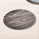 Paper coaster is perfect for rustic farmhouse barn wedding features dark wood strings lights with modern typography wedding favours.