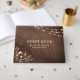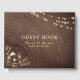 Elegant rustic wedding guest book with faux wood background, glowing string lights, and floral gold artwork. Personalised with couple’s names and date — perfect for welcoming your guests in style.